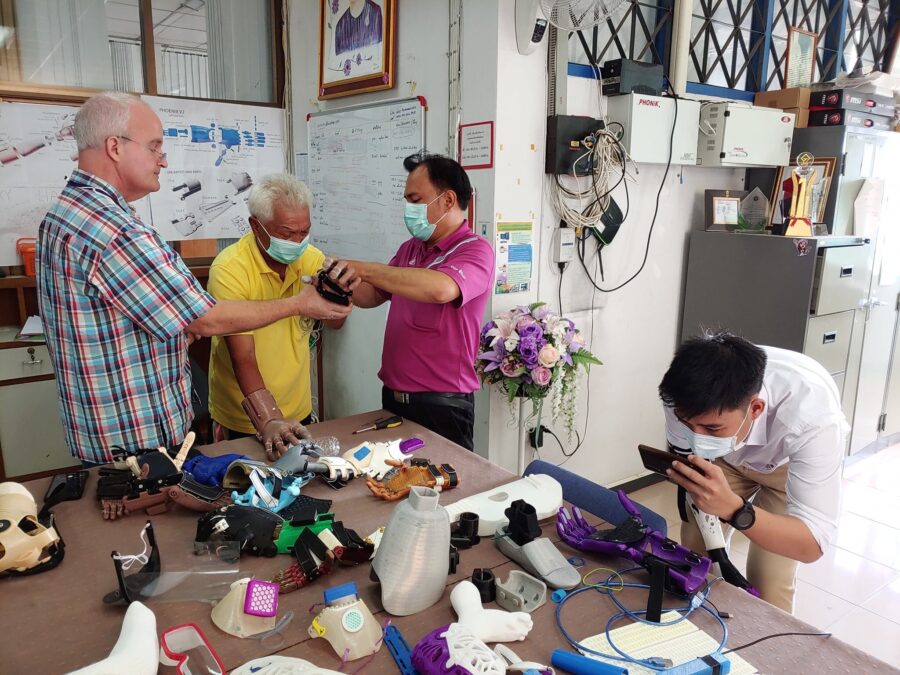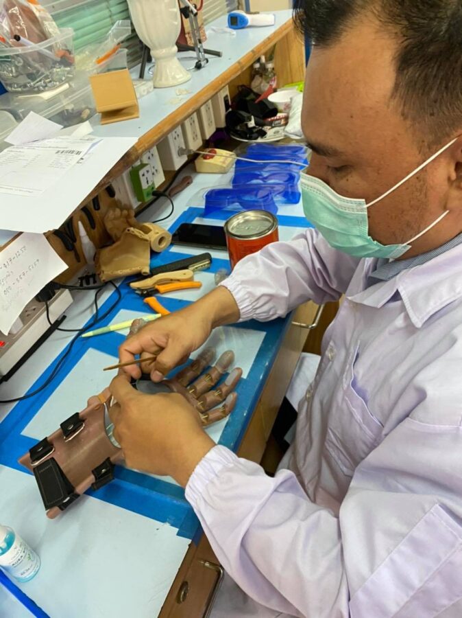 Recipient of a Kinetic Hand made by Thai Reach, a group who make devices for people with Leprosy in Thailand. He had lived without both hands for 50 years.
